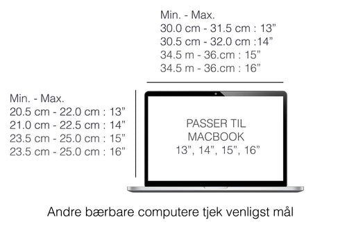 Passer perfekt til alle MacBooks og kan også bruges til andre bærbare computere. Se størrelseguide.