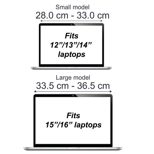 Fits most laptops from well-known brands, such as MacBook, Asus, Lenovo, Dell, HP, Acer, Huawei, Samsung, LG, and Surface. The small model fits laptops in sizes 12”/13”/14”, while the large model fits sizes 15”/16”.